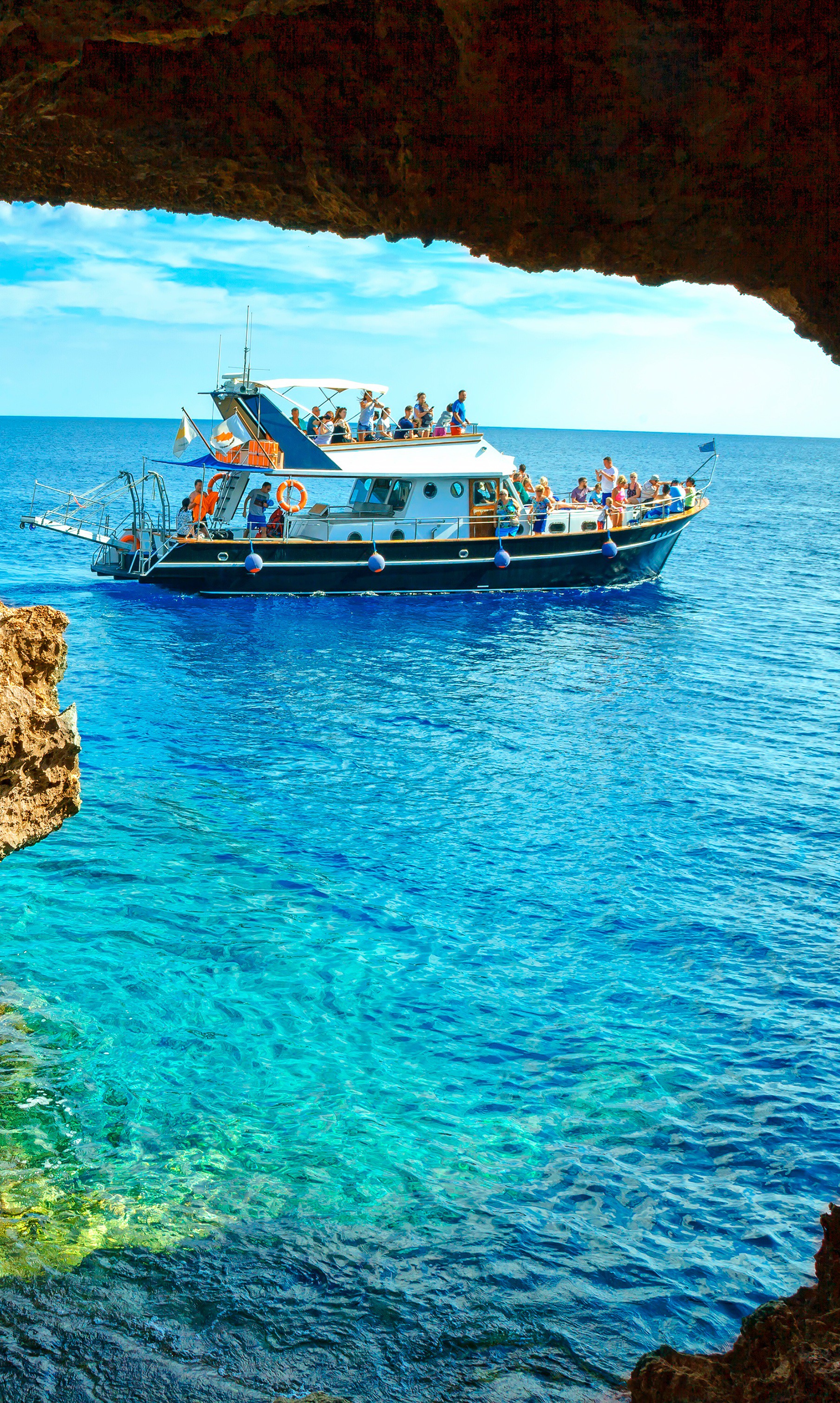 With a private catamaran trip in Cyprus, you can enjoy a day cruise to the area of Ayia Napa. You will also discover the marvelous caves of Cape Greco. This is a place of exceptional natural beauty, with turquoise waters forming a picturesque lagoon.