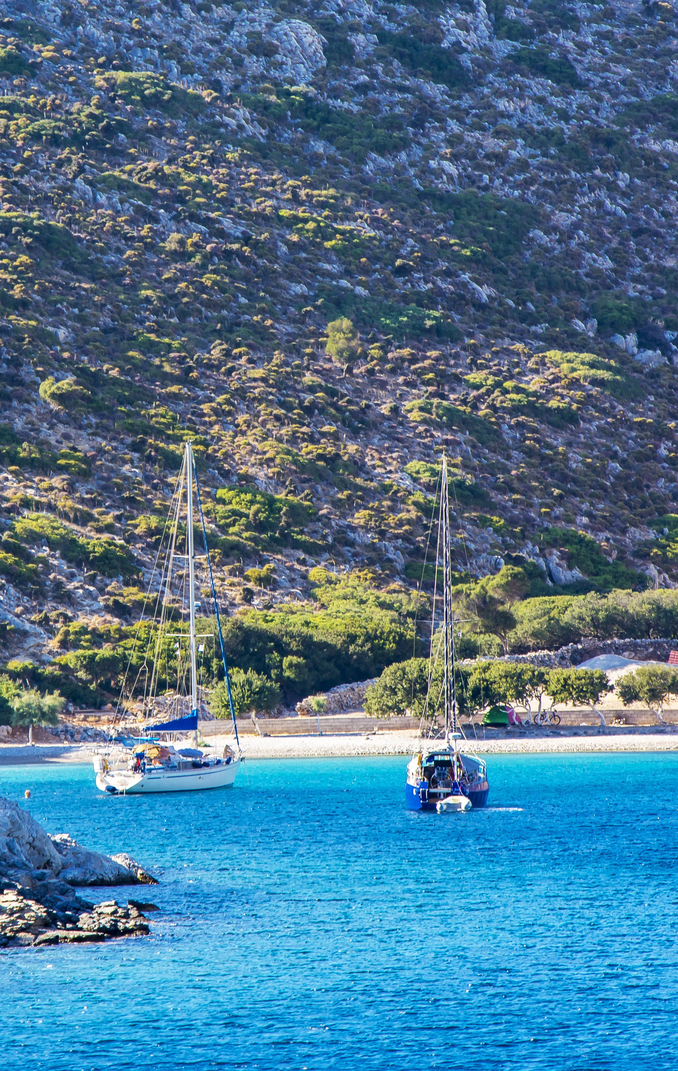 Resuming your sailing trip in Agathonisi, you will explore several bays and beaches in complete freedom. The large bay of Agios Georgios is on the south side of the island, at the far end of the port. You can sail out of the large bay and into the small beach of Amoudi and the beach of Balos. Both beaches are quite open and allow you to anchor there and stay offshore for several hours. You may even spend an overnight on the boat and explore new beaches the next day. Poros beach is in the southeastern part of the island and is the only beach with fine golden sand. The small village of Catholico and the sheltered bay of Neronisi are a secluded paradise of the Aegean. We recommend booking a vessel with a skipper on board to end an amazing circumnavigation of the island.
