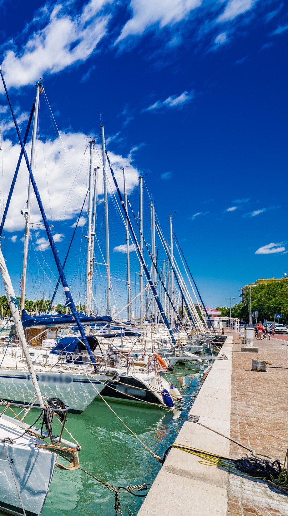 Marina di Ravenna, Porto Corsini: Offers a maximum berth of 700 vessels and serves as an important port for various goods and containers. There are many shops, yacht clubs, and hotels nearby.